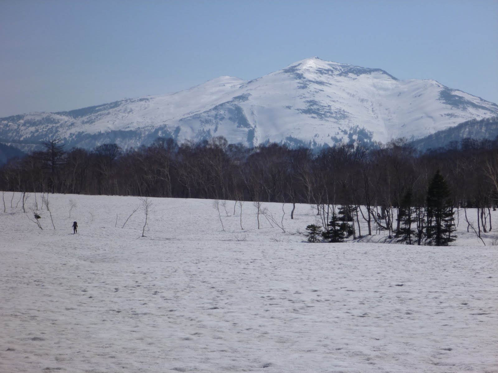 カリカリは慎重に滑って1650mまで来ました。ここからは快適な滑走でした。ザラメを思いっきり滑りました。いや~たまらん。このスケールは鳥海山でなければないでしょう。スキー場でもこんなところはないし。今日登った1200mをあっという間に滑り終えました。