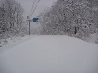 大根森到着。ちょっと風が強い。ここからちょっと本格的な雪道に。といっても10cmくらですが...