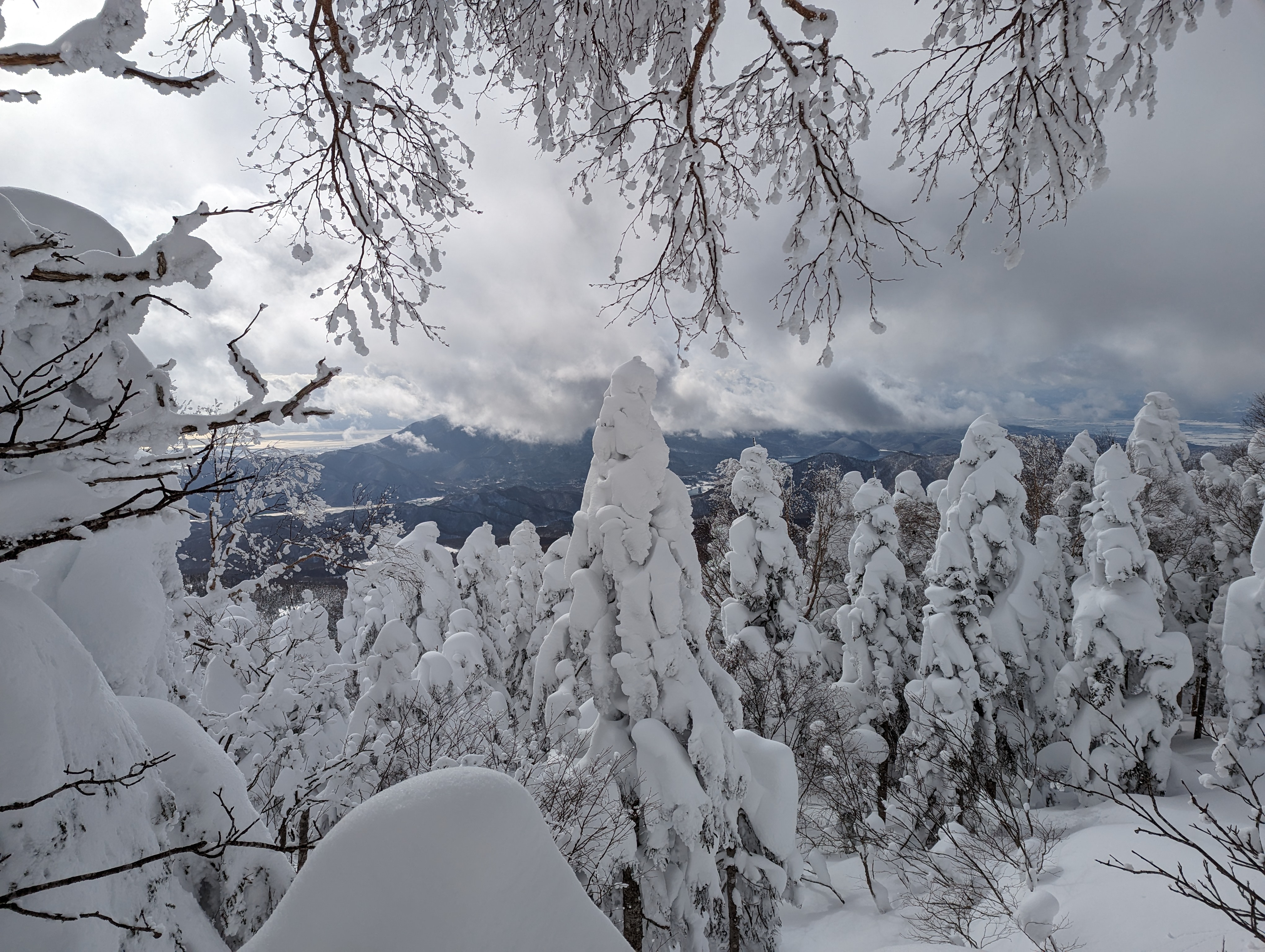 山頂付近はガリガリだけど斜度もないのでシールだけで登頂。